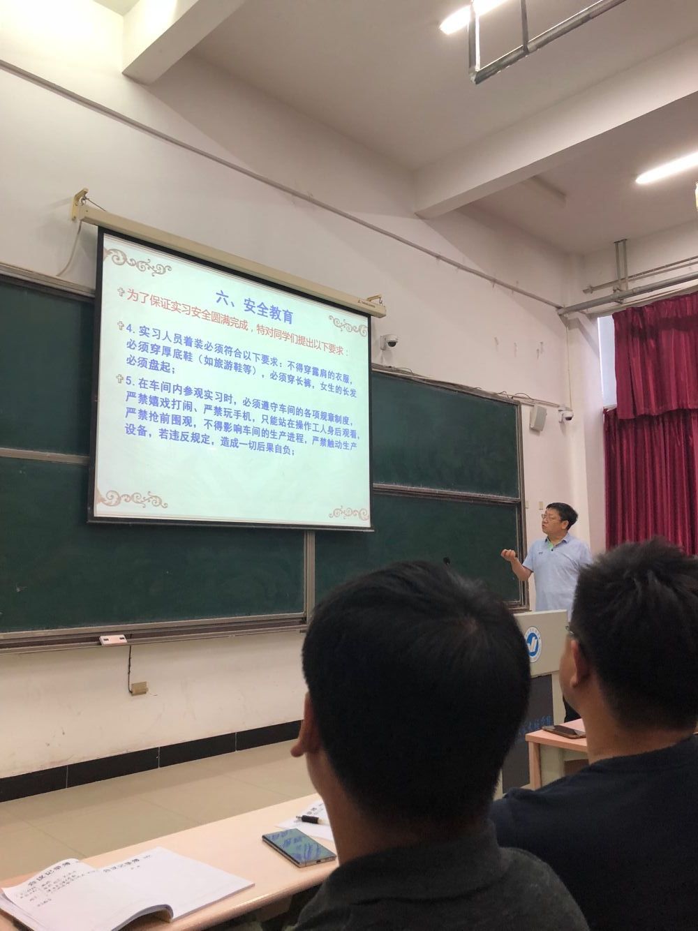 刘主任勉励同学们在实习中将课本知识与实际知识相结合,要善于发现问题并解决问题。并对生产实习的指导思想、实习目标和生产实习任务等提出了具体要求。希望实习生们多学习、勤思考、重实践,在生产实习中不断提升自身的综合素质和专业技能。另外,刘主任还对生产实习过程中安全工作作了全面部署。要求参加生产实习的员工必须购买人身意外伤害保险,要自觉遵守企业的相关规定,服从指导教师的具体安排,在生产实习的过程中展现公司的良好形象。