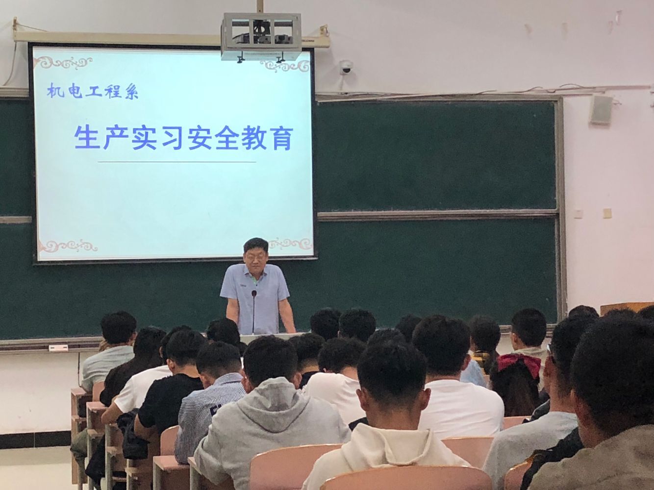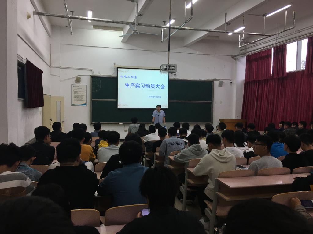 为进一步加强实践教学过程管理,提高实践教学质量,机电系于9月29日下午在二教109召开机制专业生产实习动员及安全教育大会,会议由机电系主任主持,全体实习指导教师及机制毕业班的全体同学参加会议。