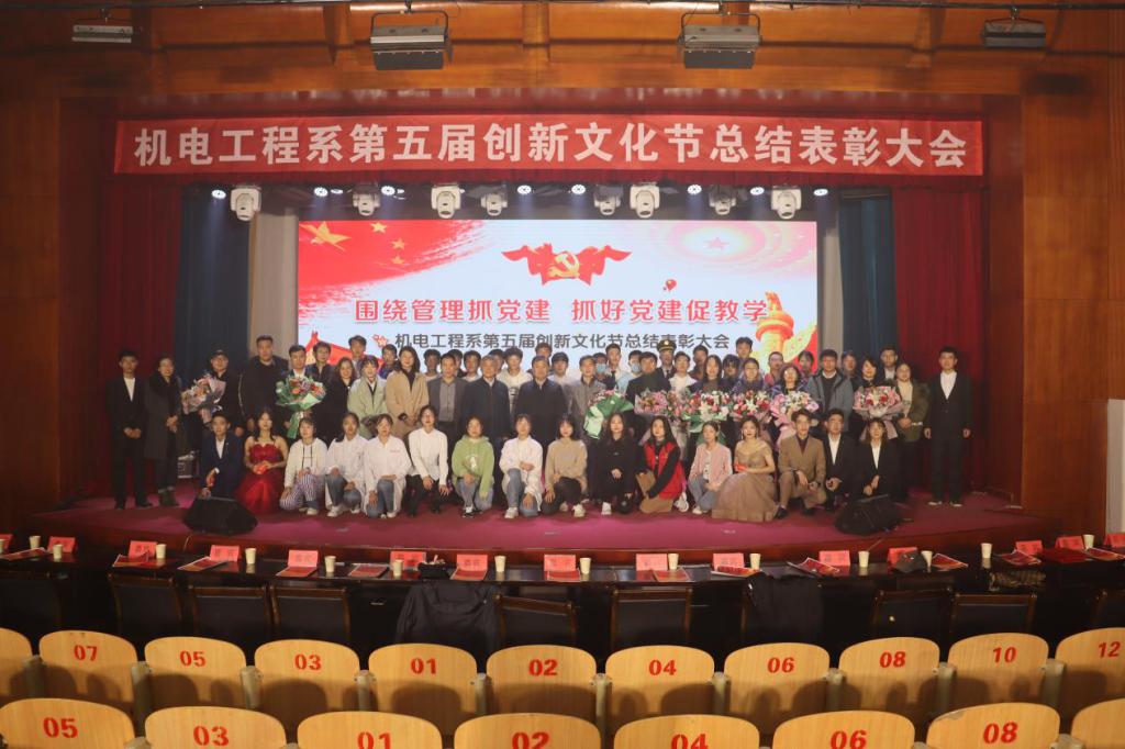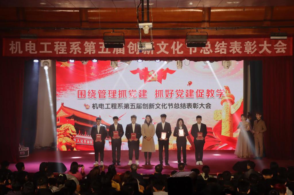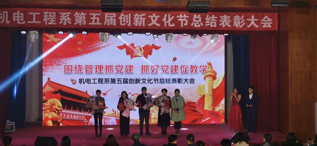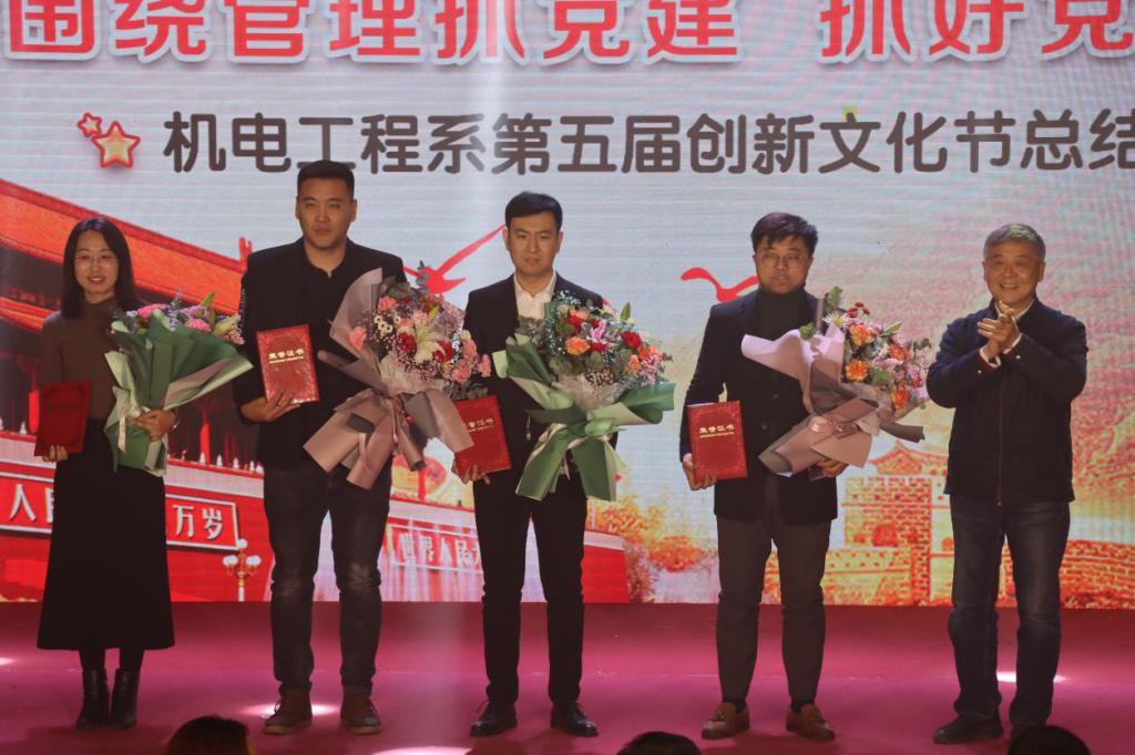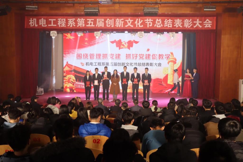 为展示机电系科技创新作品,继续发扬机电创新精神,丰富校园文化活动,以青春之活力献礼建党九十九周年。12月22日下午,机电工程系于一教207举办“围绕管理抓党建,抓好党建促教学”第五届机电创新文化节。副经理辛连军,工会主席史毅,组织统战部部长张琼玉,人才招聘部部长李洁,院团委书记申海滨,学工部副部长王明印,机电系主任教授吴永根,王卓,机电系党总支副书记王晓黎,机电系副主任刘安琴,以及机电系师生共同参加本届创新文化节总结表彰大会。