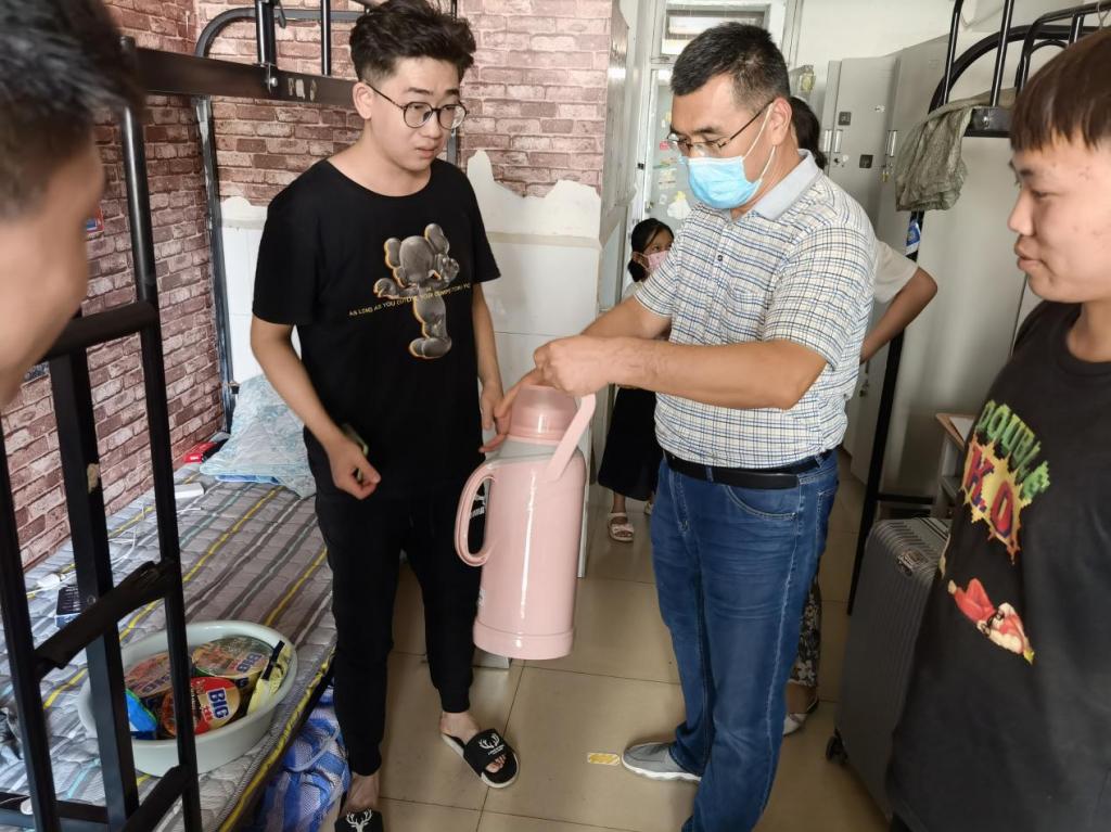 在新生宿舍,老师们与新生亲切交谈,拉家常,消除新生们的陌生感,叮嘱他们要严格遵守疫情防控期间校园管理规定,做好自我防护,遇到任何困难和问题及时与辅导员、班主任沟通交流,勉励大家要以饱满的精神状态迎接新的老员工活。同学们对老师们亲切的关怀以及对送来的生活用品,十分感动,并表示一定会严格遵守学校的疫情管控条例,配合好各项学校工作。
