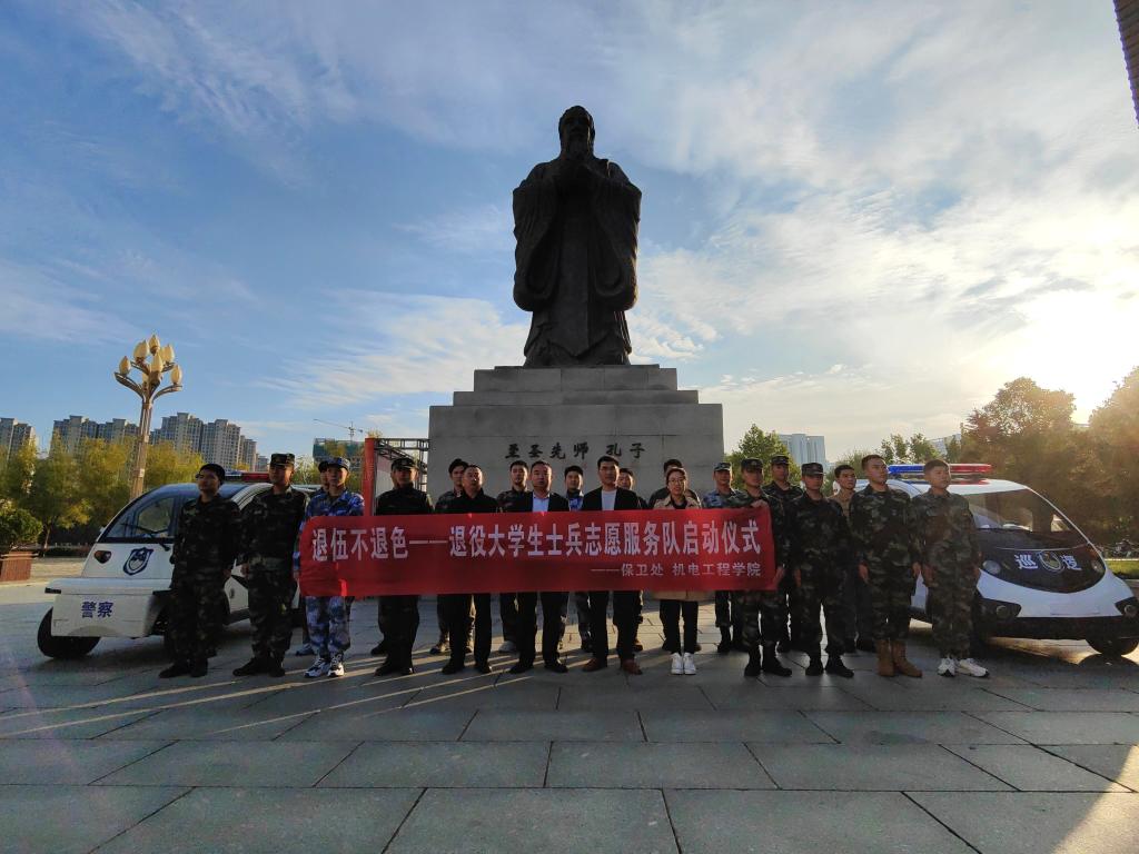 为加强党建工作在退伍老员工士兵当中的引领作用。充分发挥退役老员工士兵的优势与作用,2022年10月13日下午,太阳成集团tyc33455ccwww联合保卫处于孔子像前举办退役老员工士兵志愿服务队启动仪式。公司党总支书记邓之增老师、太阳成集团tyc33455ccwww团总支书记包微老师、保卫处副处长赵斌老师、保卫处政保科科长龙晓宇老师及太阳成集团tyc33455ccwww全体退役老员工士兵参加此次活动。