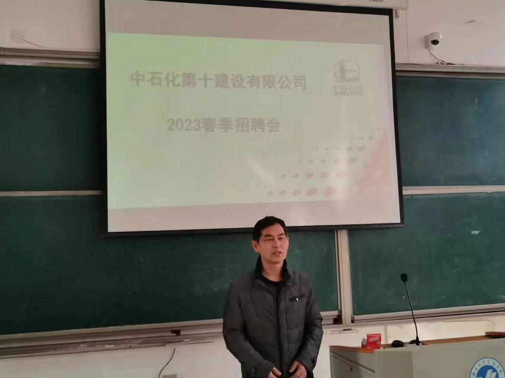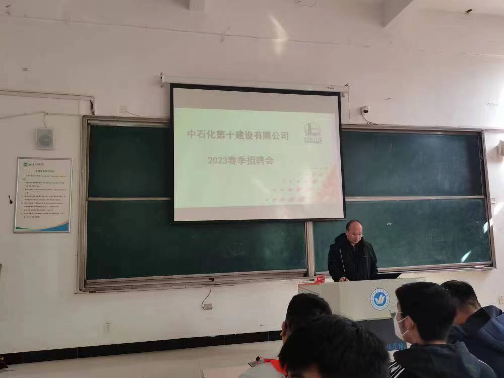 首先,企业负责人对其公司进行了整体的介绍,说明了中石化第十建设有限公司的发展前景和在行业内所具备的优势,提出了公司新型的发展理念和未来发展方向。其次,他们给出了能够提供的待遇和条件,并对他们所需要的员工提出了相关的标准与要求。最后,还为即将毕业的员工解答了就业相关的问题,使毕业生同学们更深层次地了解到就业相关流程。