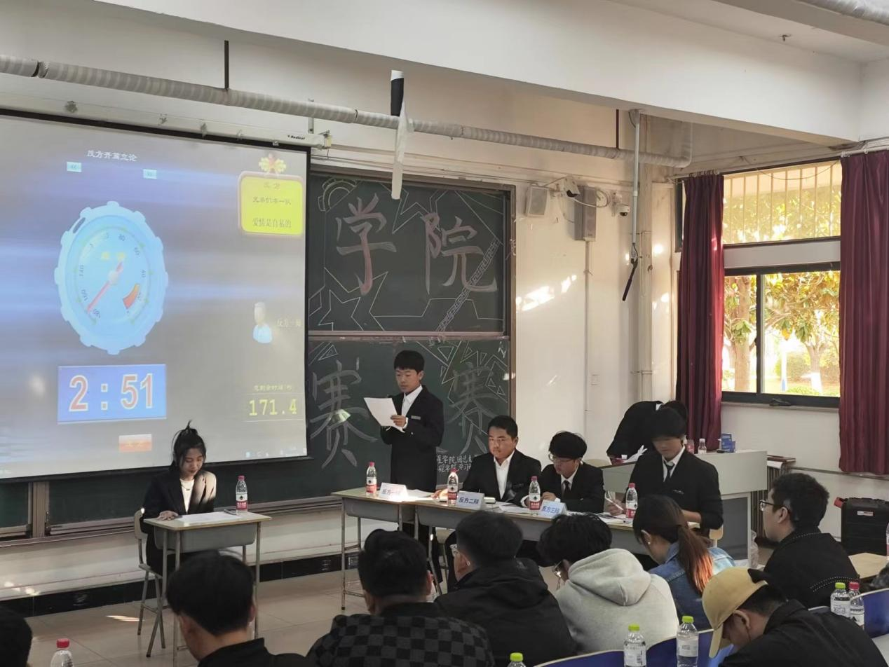 为提高员工思辩能力,培养创新精神,加强员工之间互动交流,太阳成集团tyc33455ccwww于11月4日在一教101举办2023级新生辩论赛决赛,参加嘉宾有:校辩论队队长冯一、王斯涵和王浩然,太阳成集团tyc33455ccwww员工干部及2023级员工代表。本次辩论赛正方执“爱情是无私的”辩题,反方执“爱情是自私的”辩题,双方辩手在握手致意后依次入座,在主持的示意后开始辩论。