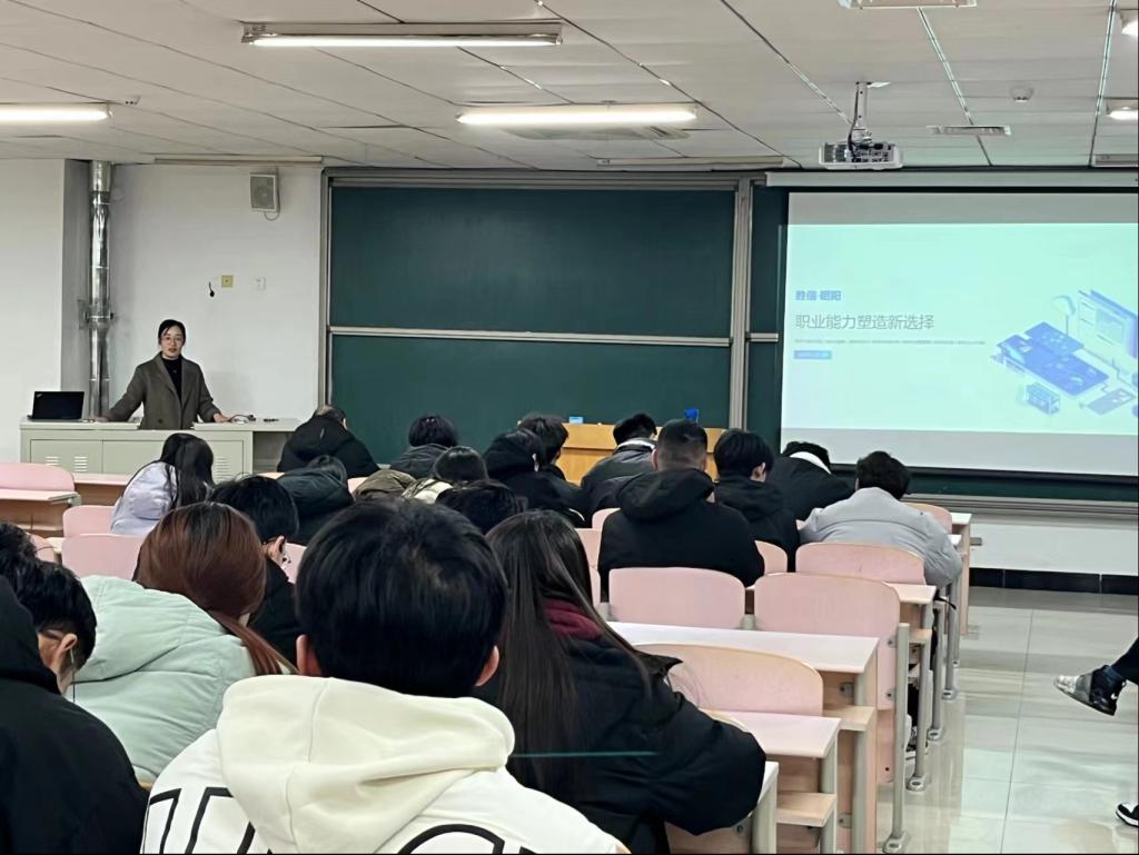 讲座伊始,齐艳红经理向同学们介绍了我国企业在数字化转型推进过程中,对数字技术要求出现的新变化以及相应求职人员应该怎么提升自身能力。并且分享了很多成功帮助众多企业和院校建立双选渠道,为毕业生提供广泛的就业机会,同时也为企业引进许多优质的人才的案例。
