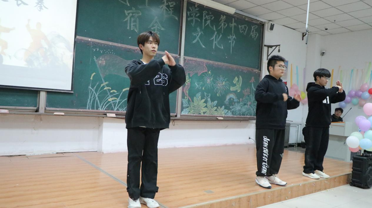 在本次活动征集过程中短视频大赛收到众多优秀作品,它们从不同角度记录宿舍生活的点滴,活动在活力四射的舞蹈《GGB》中拉开了帷幕。一首《不遗憾》让同学们沉浸在了音乐的世界,回味着过去的点点滴滴,心生无限眷恋;相声《三大才子》逗得台下观众哈哈大笑,笑声、掌声交织在一起,使现场氛围更加欢乐,随后武术的上台更让人震撼,动作时而迅猛,气势磅礴,时而舒缓,行云流水;《哑剧》的出现使现场氛围达到了高潮,没有言语的喧嚣,一种独特而静谧的氛围,悄然蔓延。《海盗舞》充分展现了机电学子的创意,旋律奏响如同汹涌澎湃的海浪撞击,撞击着心弦,将观众瞬间带入那个充满冒险与传奇的海盗世界。小品《反转的压力》剧情跌宕起伏,不断反转,赢得了阵阵欢呼;《蓝莲花》的吉他弹奏扣人心弦,每一个动作都自然流畅,似在诉说着一段动人的故事;朗诵《新时代新青年》时,朗诵者们身姿挺拔,整齐的站成一排,宛如坚毅的青松,彰显出新时代青年的朝气与活力;歌曲《后来》将听众带入一个充满遗憾和温情的世界,让人不禁陷入对过去的回忆。最后大家合唱《带我去找夜生活》,旋律响起,瞬间点燃了夜的激情,在现场的欢呼和不断挥舞的荧光棒中氛围达到顶峰。