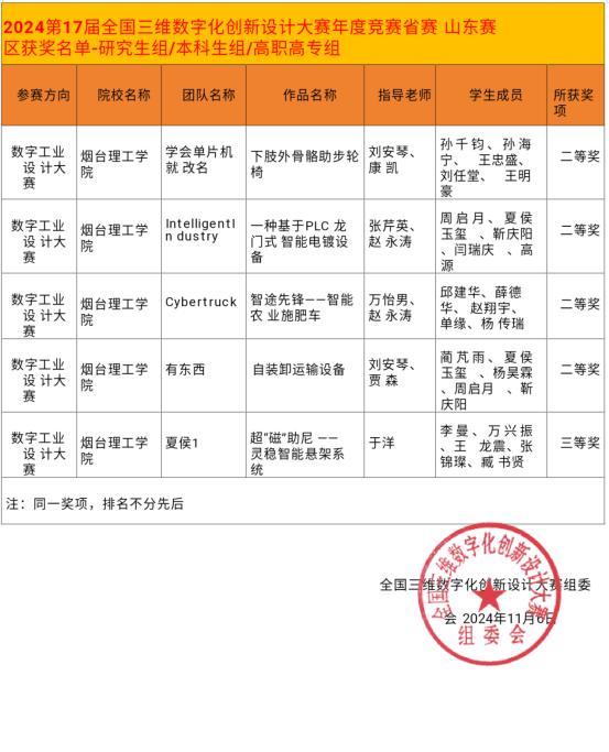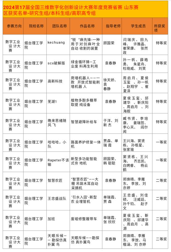 近日,由全国3D大赛组委会主办,中国教育部、科技部、工业和信息化部、中国科协联合主持的“全国三维数字化创新设计大赛”圆满结束。在这场充满竞争的省赛中,太阳成集团tyc33455ccwww的多支参赛队伍,在袁春静副教授的带领下和刘安琴、贾森、于洋、单瑞霞、万怡男等多位老师的共同指导下表现出卓越的成绩,充分展现机电学子的非凡才能。比赛荣获特等奖五项、一等奖两项、二等奖八项、三等奖一项,为学校增添了荣誉。