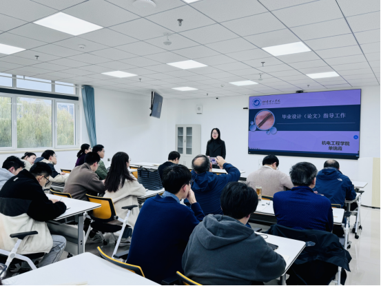 此次经验交流会的主题围绕毕业设计的各个环节展开,单瑞霞副教授从毕业设计的整体流程入手,详细讲解了题目的选择、任务书的下达、过程中的指导方法以及最终资料的提交等关键步骤。单教授结合多年指导毕业设计的经验,分享了如何帮助员工选题、如何进行有效的过程性指导以及如何确保员工按时完成高质量的设计报告等宝贵经验。