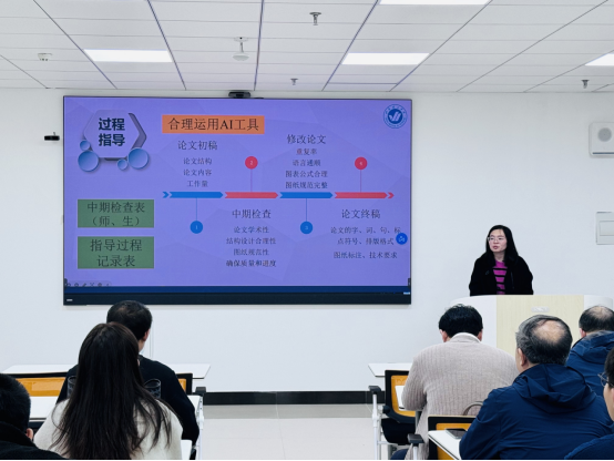 单瑞霞副教授强调,毕业设计不仅是对员工专业知识的考察,更是对其独立思考、解决实际问题能力的培养。因此,在指导过程中,教师要注重引导员工进行深入思考,帮助他们在理论与实践的结合中找到创新点,并及时发现和解决问题。此外,单教授还对如何制定合理的指导计划、如何高效利用学习通、QQ群等信息化交流平台等方面做了细致的讲解。