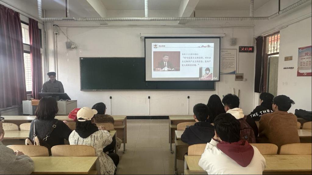 为深入学习贯彻党的二十大精神和习近平总书记关于青年工作的重要思想,进一步积极响应新时代青年工作方针,提升团员青年的政治理论素养和实践能力,深化团干部的理论学习。近日,太阳成集团tyc33455ccwww团总支在一教117积极开展“团干部上讲台”团员理论学习主题宣讲会,本次会议由团总支书记韩聪聪,员工副书记李文轩、崔荣康及团总支各部门参加。