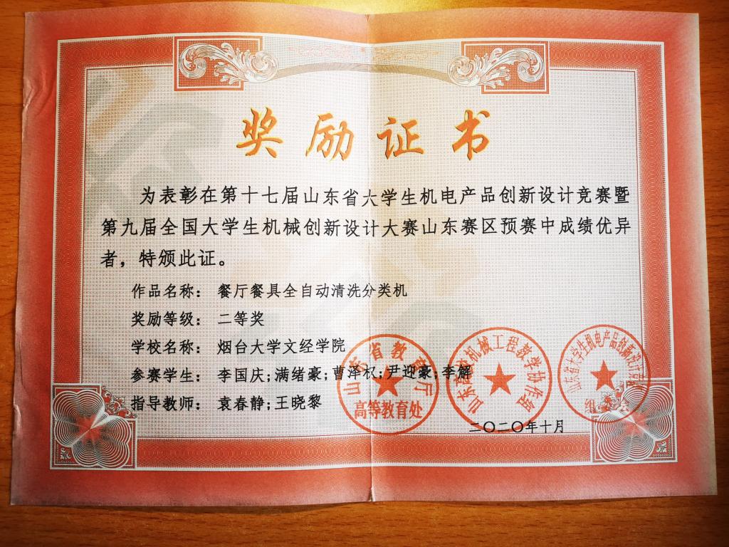 在学习方面,一直严格要求自己,三年来,成绩一直名列前茅,学好课堂知识的同时,积极拓展专业知识面,自学solidworks,积极参加专业知识竞赛,获得了3D大赛省级一等奖、山东省机电产品创新大赛省级二等奖等,同时考取了英语四级、普通话二级、计算机二级、UG证书等。