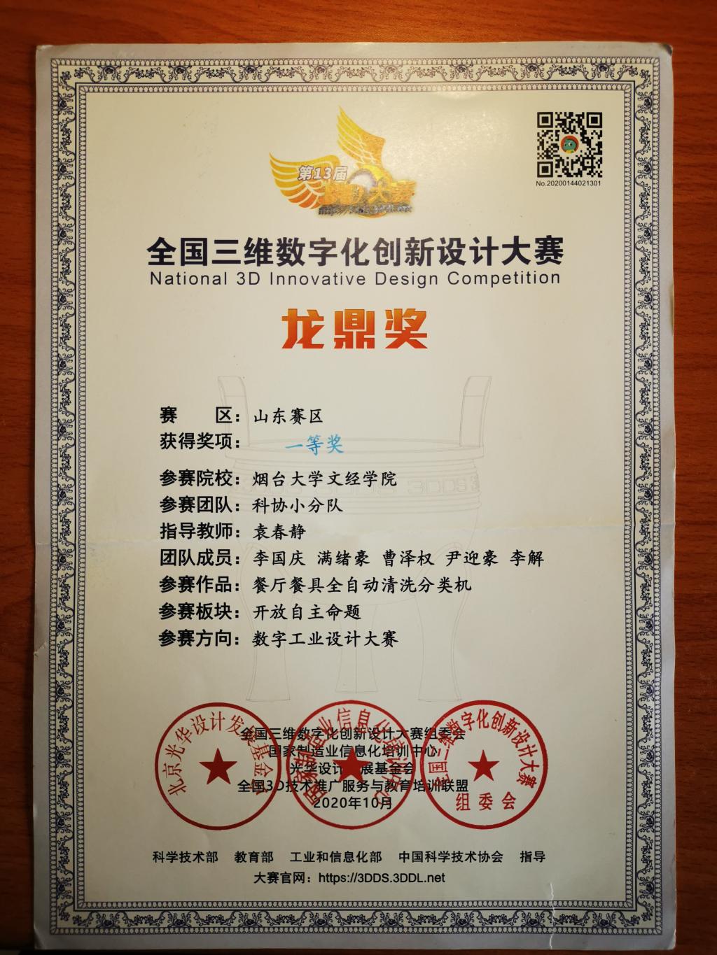 太阳成集团tyc33455ccwww19级机制专业,尹迎豪,曾获省政府奖学金、优秀员工奖学金,全国三维数字化创新设计大赛省级一等奖、山东省机电产品创新大赛省级二等奖、太阳成集团“挑战杯”老员工课外学术科技作品竞赛一等奖,烟台大学文经学院第四届“互联网加”老员工创新创业大赛银奖、优秀共青团员、优秀共青团干部、优秀青年志愿者、优秀员工教学信息员等。