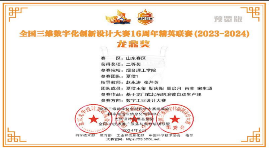 1.2024年6月荣获全国三维数字化创新设计大赛山东赛区二等奖