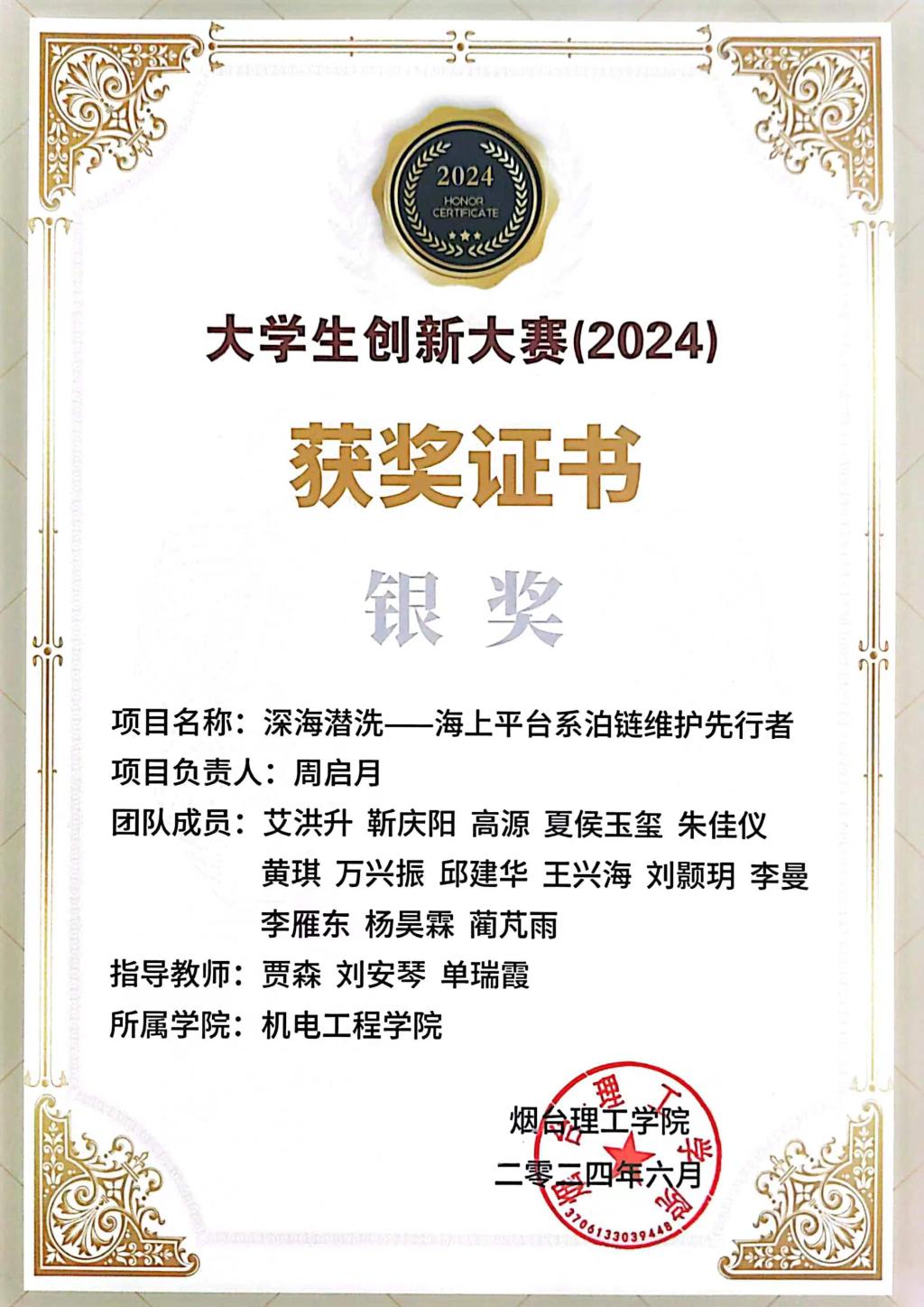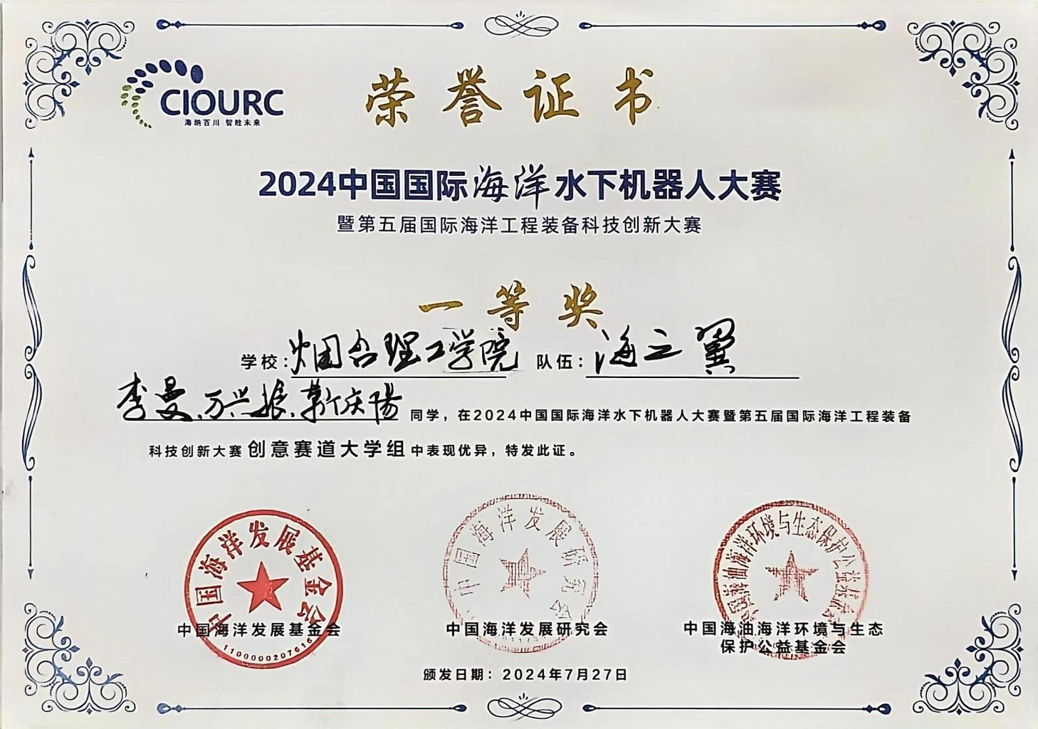 1.2024年7月荣获中国国际海洋水下机器人国家级一等奖