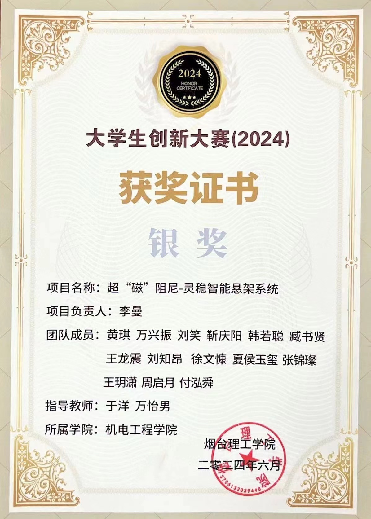 10.2024年4月获“挑战杯”太阳成集团老员工创业计划竞赛金奖、银奖、铜奖各一项
