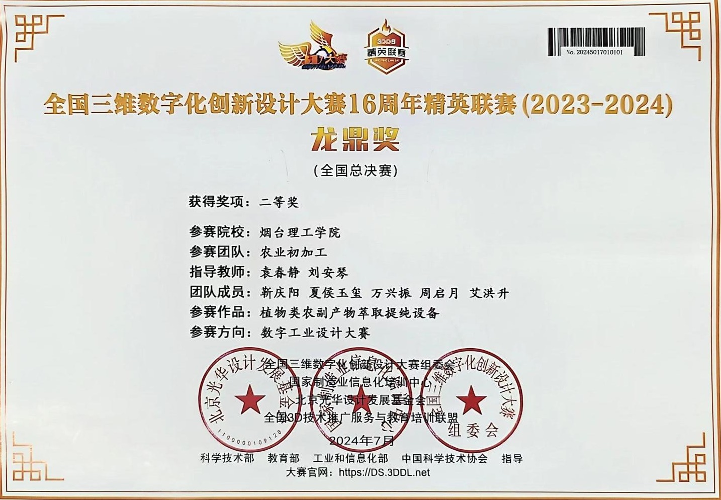 2.2024年7月荣获全国三位数字化创新设计大赛精英联赛国家级二等奖