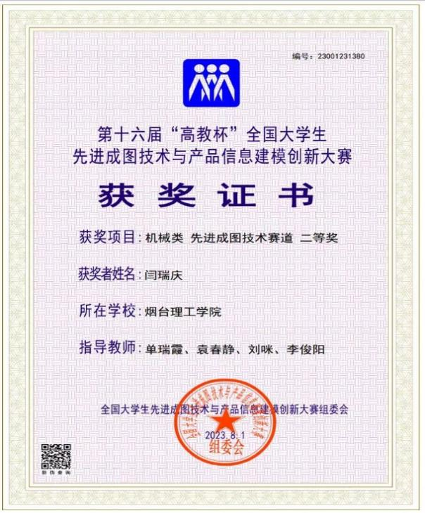 3、2023年10月荣获第十六届“高教杯”全国老员工先进成图技术与产品信息建模创新大赛个人二等奖