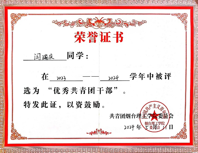 11、2024年授予2023-2024学年“优秀共青团干部”